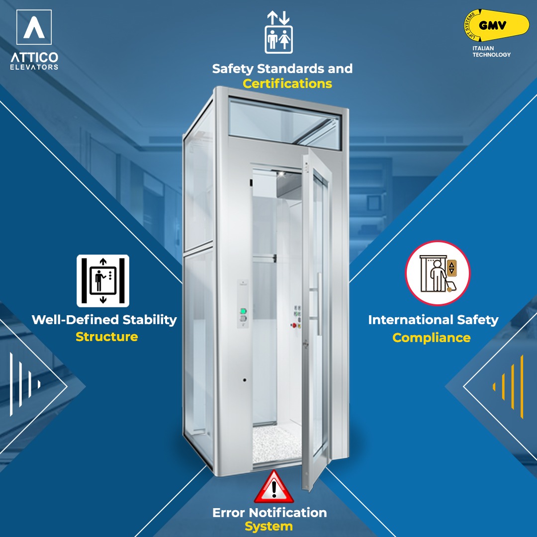 Attico Elevators is a leading lift manufacturer in Delhi and work with partnership of GMV India, a subsidiary of GMV Spa in Milan, Italy. With over a decade of experience, we create customized elevators for homes, businesses, and industrial facilities. Our offerings include passenger elevators, car lifts, and machine room-less (MRL) elevators, among others. We blend innovative design with high-quality engineering, ensuring our elevators not only look great but also provide advanced safety features for a smooth and reliable ride.
