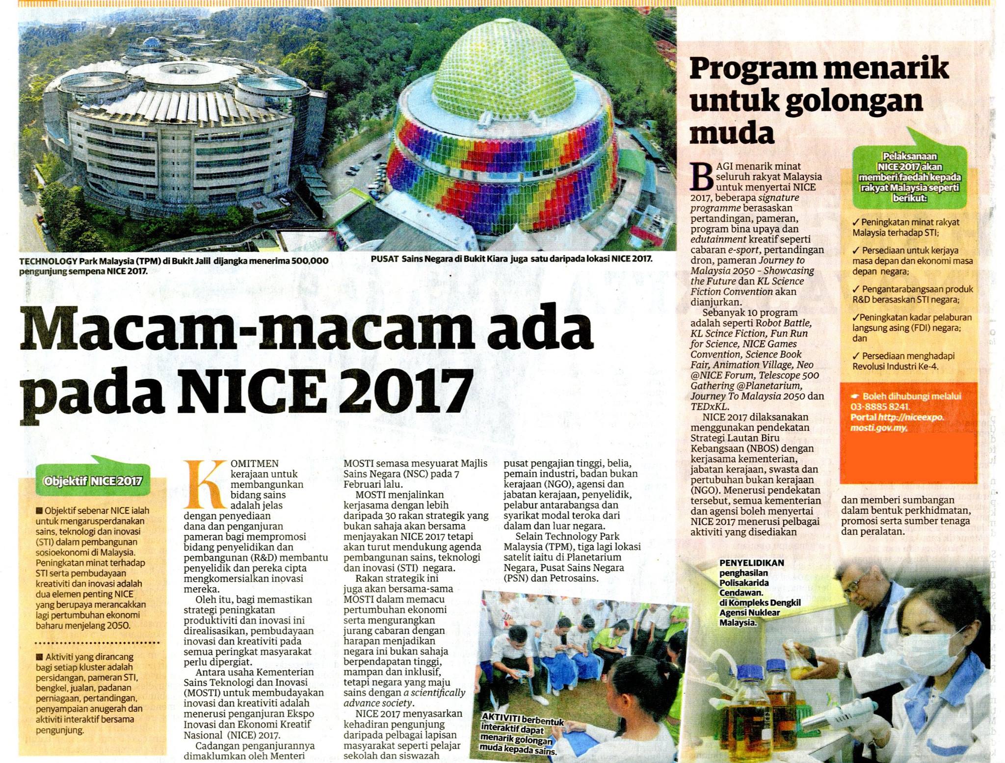 Melihatkan kepada perkembangan positif sebeginilah, penganjuran ‘National Innovation and Creative Economy Expo 2017’ (NICE 2017) pada 12 hingga 16 Oktober ini dianggap sebagai tepat pada masanya.