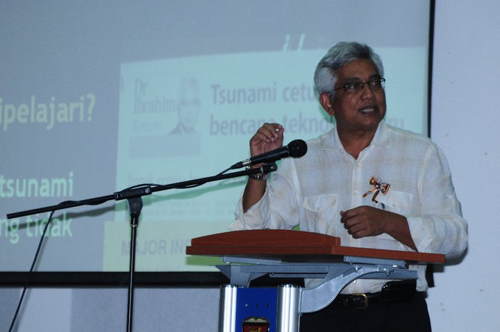 Antara isi penting yang disampaikan oleh Prof Dr Ibrahim berkenaan punca berlaku gempa bumi di Jepun baru-baru ini adalah akibat pertembungan antara dua plat tektonik iaitu plat Euroasia dan Asia Pasifik. Pertembungan dua plat tersebut yang dianggarkan sepanjang 500 – 600 km telah menghasilkan gempa 8.9 magnitud dan menghasil after shock (gempa susulan) lebih daripada 100 kali.