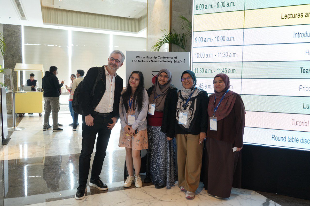 Pada Januari 2025, penulis dan Dr. Fatimah berpeluang menghadiri NetSciX 2025, salah satu persidangan tahunan utama bidang Sains Rangkaian yang diadakan di Indian Institute of Technology, Indore, India. Di sana, buat pertama kali penulis berpeluang berjumpa dengan Barabási sendiri dan mendengar kisah-kisah menarik beliau tentang dunia Sains Rangkaian. Seiring dengan sifat multidisiplin yang sering ditekankan oleh Barabási, suasana NetSciX yang meriah mempertemukan penyelidik daripada pelbagai disiplin.