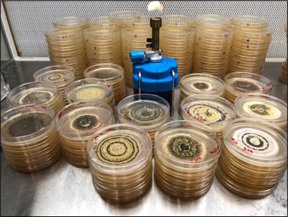 Gambar 1: Aktiviti pemencilan kulat Metarhizium di dalam makmal