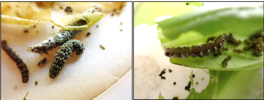 Gambar 3: Kesan jangkitan Metarhizium pada serangga perosak. Kiselia putih dan spora hijau membaluti serangga yang mati dijangkiti.