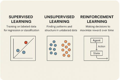 Secara umum, Machine Learning boleh dibahagikan kepada tiga kategori utama, bergantung kepada cara sistem belajar daripada data: