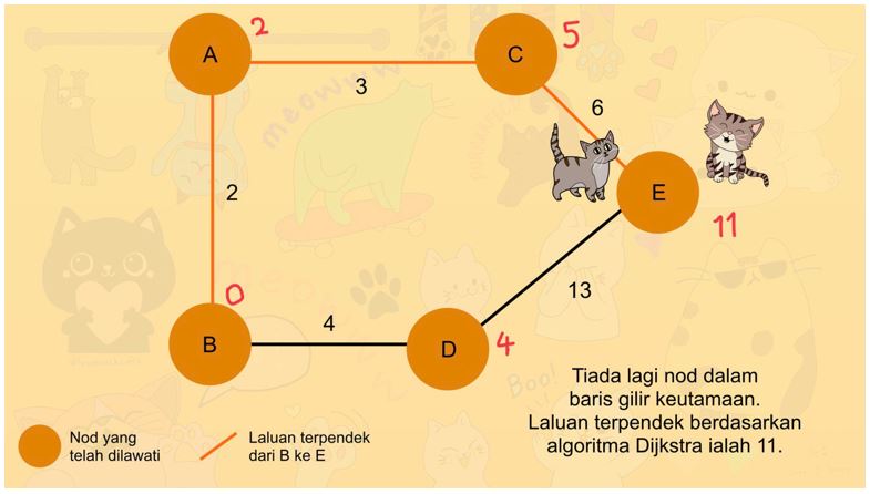 Jadi, lain kali anda sesat dan menggunakan GPS, ingatlah algoritma Dijkstra. Malah, anda boleh cuba sendiri dengan melukis rangkaian ringkas kejiranan anda dan menggunakan algoritma Dijkstra untuk mencari laluan terpendek dari satu sumber ke destinasi. Jika seekor kucing boleh memahaminya, anda juga boleh!