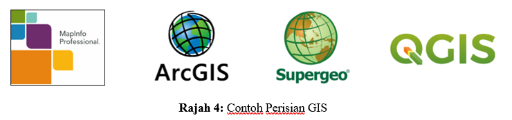 Perisian terdiri daripada set arahan yang dibangunkan agar komputer boleh menjalankan fungsi sepertimana dikehendaki oleh pengguna. Ia berinteraksi antara manusia dan komputer (Human Computer Interaction, HCI) agar pengguna yang rata-ratanya bukan terdiri daripada latar belakang ICT boleh mengoperasikan komputer tanpa perlu mengetahui bagaimana menetapkan set arahan melalui bahasa pengaturcaraan kepada mesin. Antara perisian GIS di pasaran adalah ArcGIS, Mapinfo, Quantum GIS dan sebagainya. Ia berfungsi untuk menerima input dan memproses data geospatial seterusnya mengembalikan output kepada pengguna. Antara kriteria pemilihan perisian adalah kompleksiti pemprosesan, kuantiti data, jenis data, output yang diperlukan dan keupayaan melaksanakan analisa. Pada kebiasaanya, Pegawai Teknologi Maklumat organisasi akan menjalankan analisa dengan mengambilkira pelbagai faktor termasuklah aspek kewangan sebelum jenis perisian tertentu disyorkan kepada pihak pengurusan.