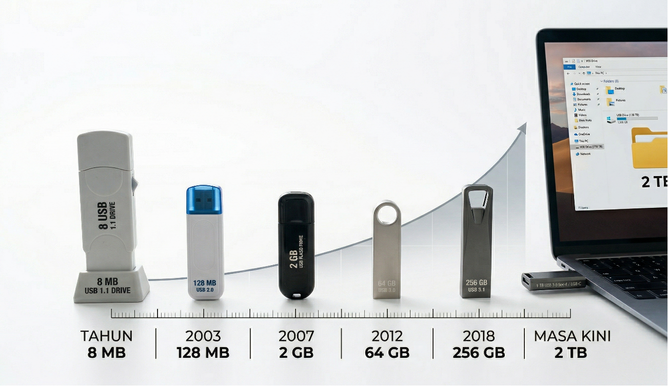 Rajah 2: Peningkatan kapasiti storan yang mendadak dalam dimensi saiz yang tidak jauh bezanya.