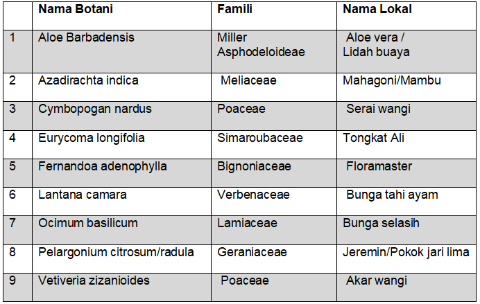Jadual 1: Tumbuh-tumbuhan  Yang Boleh Menghalau Nyamuk